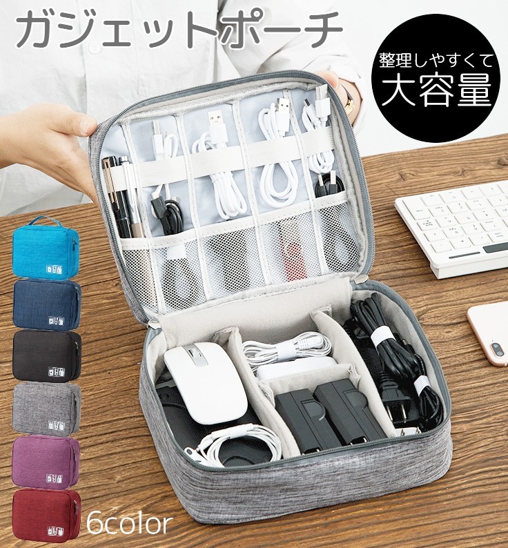 ガジェットポーチ ガジェットケース メイクポーチ 小物入れ バッグ ポーチ トラベル用品 モバイル バッテリー ケーブル 収納 大容量 旅行 充電器