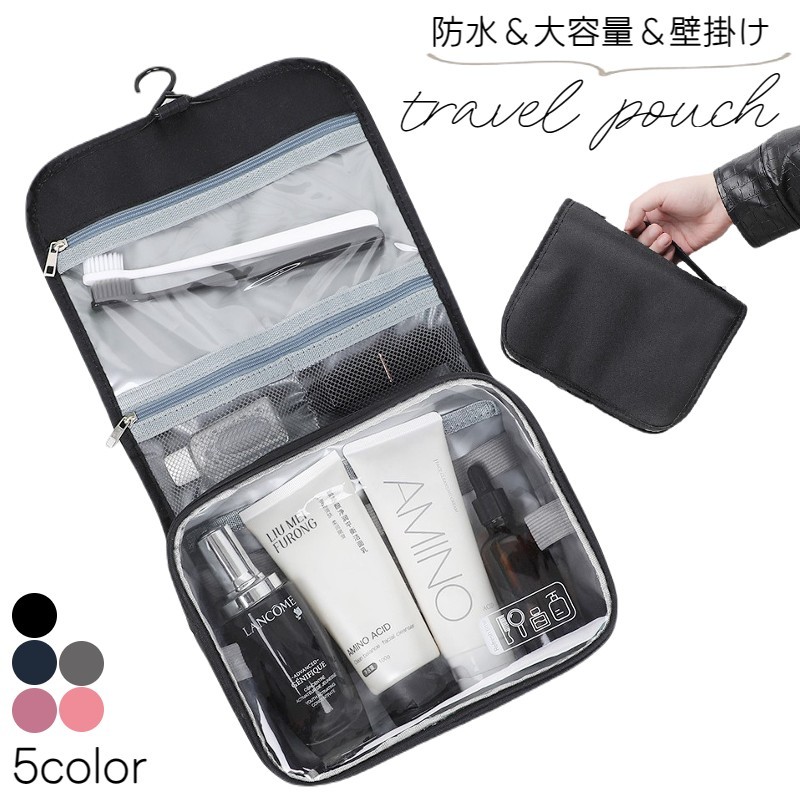 トラベルポーチ 化粧ポーチ メイクポーチ トラベルバッグ フック 吊り下げ 壁掛け コスメ入れ スキンケア入れ 小物 収納 整理 旅行 洗面 携帯 大