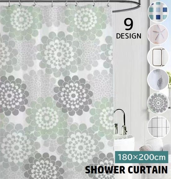 シャワーカーテン バスカーテン カーテンリング付き 目隠し 間仕切り 防水 お風呂 バス用品 浴室 ユニットバス 脱衣所 シャワールーム 新生活 模様