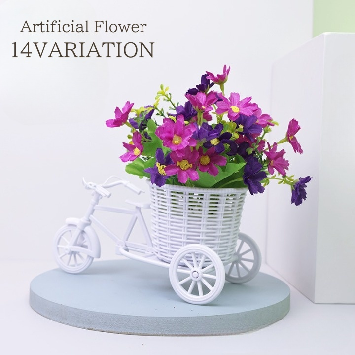 フェイクフラワー 造花 鉢付き インテリア フラワー 花 バラ 薔薇 コスモス 鉢花 かわいい おしゃれ プランター 自転車 植木鉢 鉢カバー