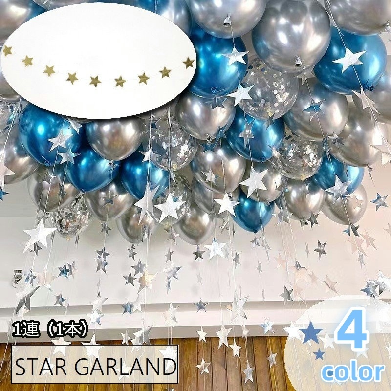 ガーランド ウォールデコレーション 1m 1本 壁飾り 天井飾り 飾りつけ 星 スター 装飾 壁掛け パーティグッズ イベントグッズ 室内装飾 Xma