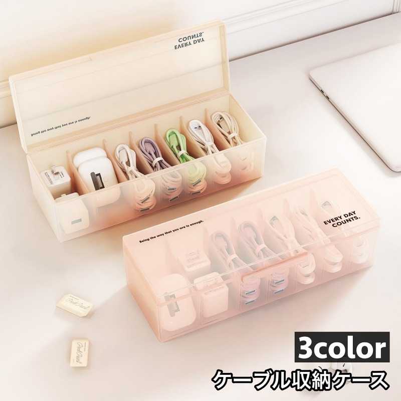 ケーブル収納ケース ケーブルボックス コードケース 仕切り 収納用品 蓋付き 半透明 コードボックス アダプター収納 電源ケーブル アダプター 収納箱