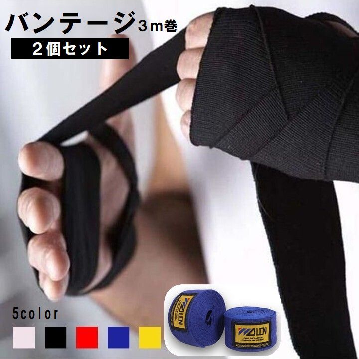 バンテージ 2個セット 1組 ボクシング 格闘技 キックボクシング 伸縮性 面ファスナー マジック テープ 左右セット