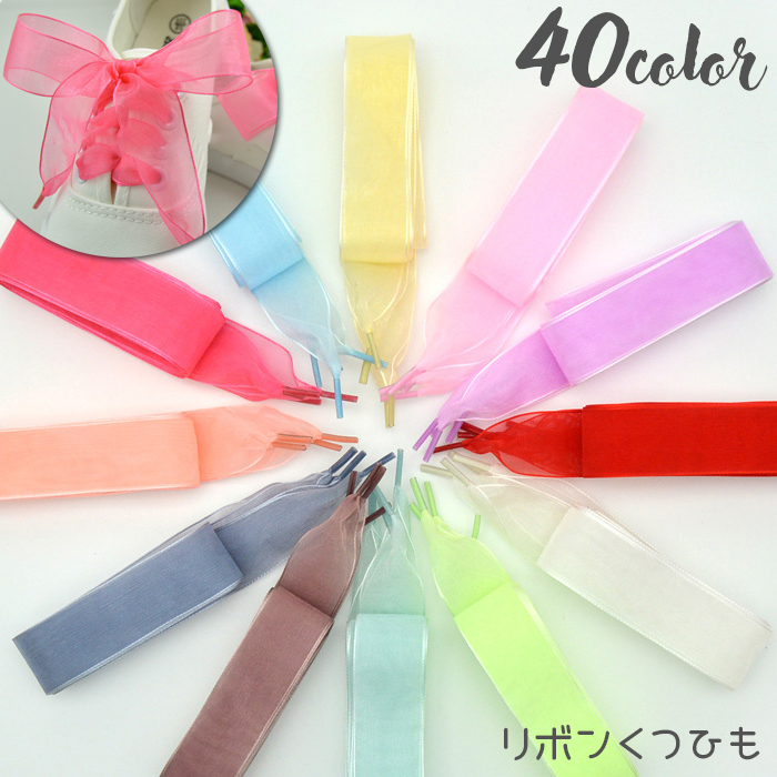 靴ひも 靴紐 シューレース りぼん リボン レディース シューアクセ オーガンジー 幅広 透け感 ふんわり かわいい スニーカー シューズ くつ カラ