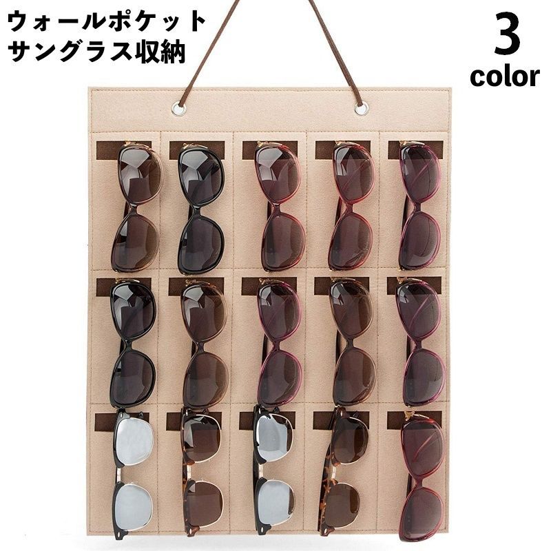 ウォールポケット サングラス収納 メガネ収納 吊り下げ式 壁掛け フェルト製 15本 眼鏡 めがね サングラス 展示用 自宅用 おしゃれ インテリア