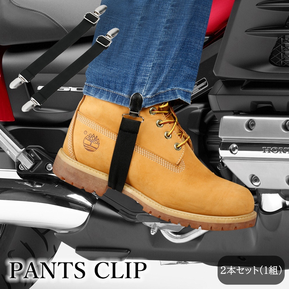 パンツクリップ 1組 2本セット ズボンクリップ 男女兼用 バイク 自転車 裾止め ゴムバンド 伸縮性 風対策 巻き込み防止 汚れ防止 調節可能