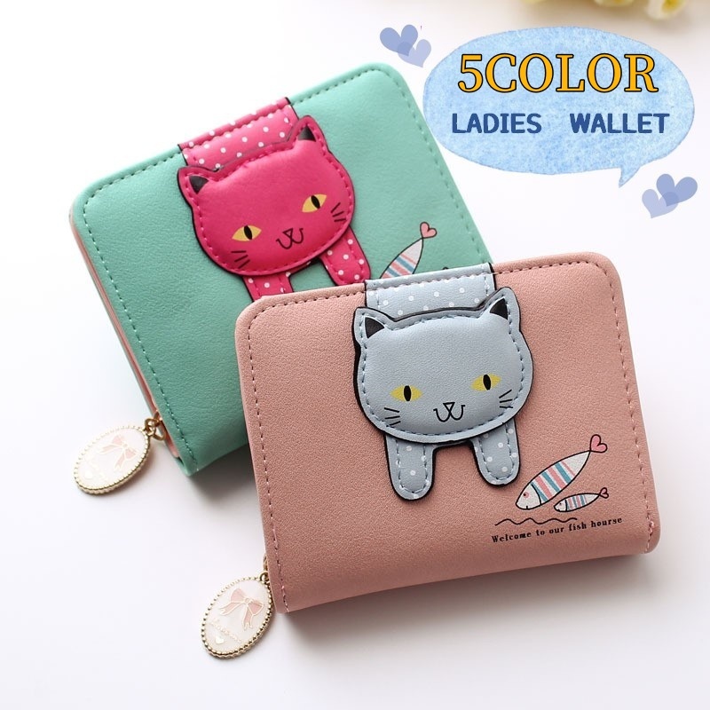財布 ウォレット 2つ折りサイズ 猫 キャット 小銭入れ お札入れ レディース 女性 女の子 ガールズ かわいい キュート たっぷり収納 ファナー カ