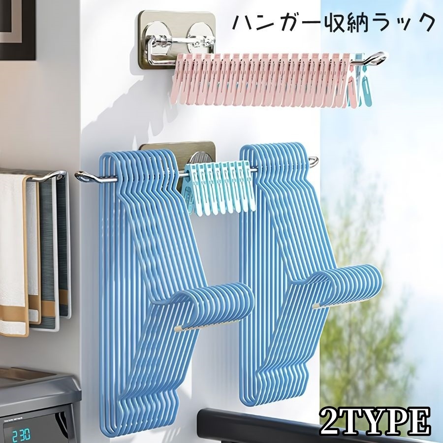 ハンガー収納ラック ハンガーラック ハンガーホルダー 収納 ランドリー収納 タオル掛け 洗濯バサミ 壁掛け 洗濯 浴室 洗面所 省スペース おしゃれ