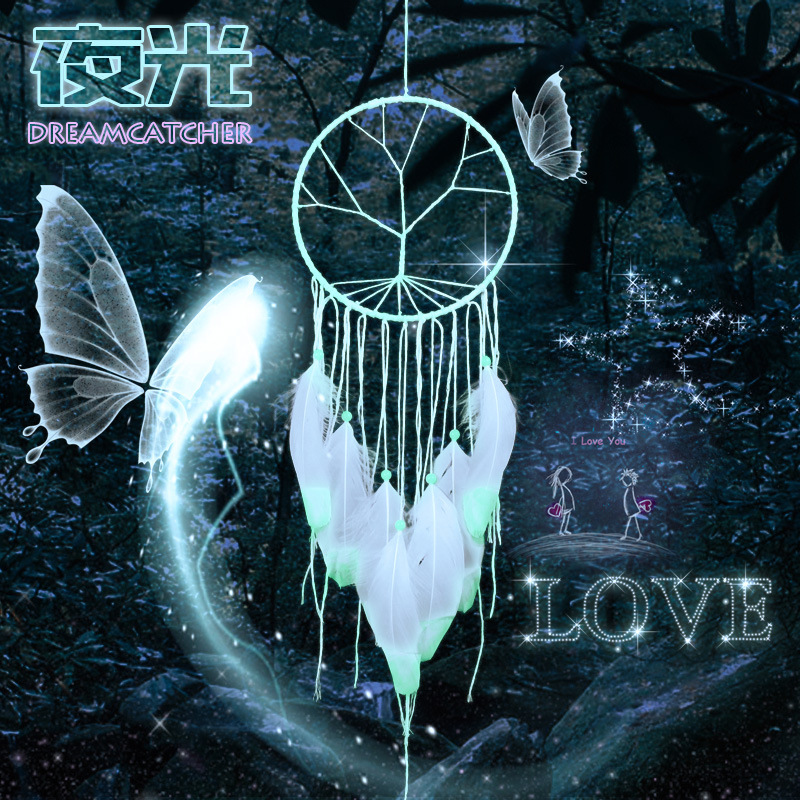 ドリームキャッチャー フェザーペンダント ウィンドチャイム 夜光 光る オーナメント インテリア 玄関 窓 飾り 装飾 ビーズ 羽毛 羽根 白 ホワイ