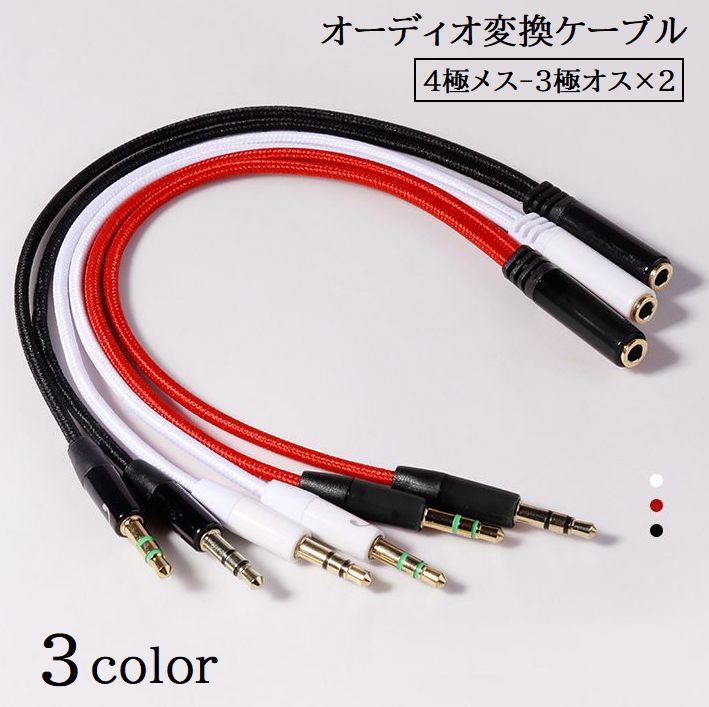 オーディオ変換ケーブル 分配ケーブル マイク付きヘッドホン用 ヘッドセット用 3.5mmミニプラグ 4極メス 3極オス 2 分岐ケーブル 音声分離 二