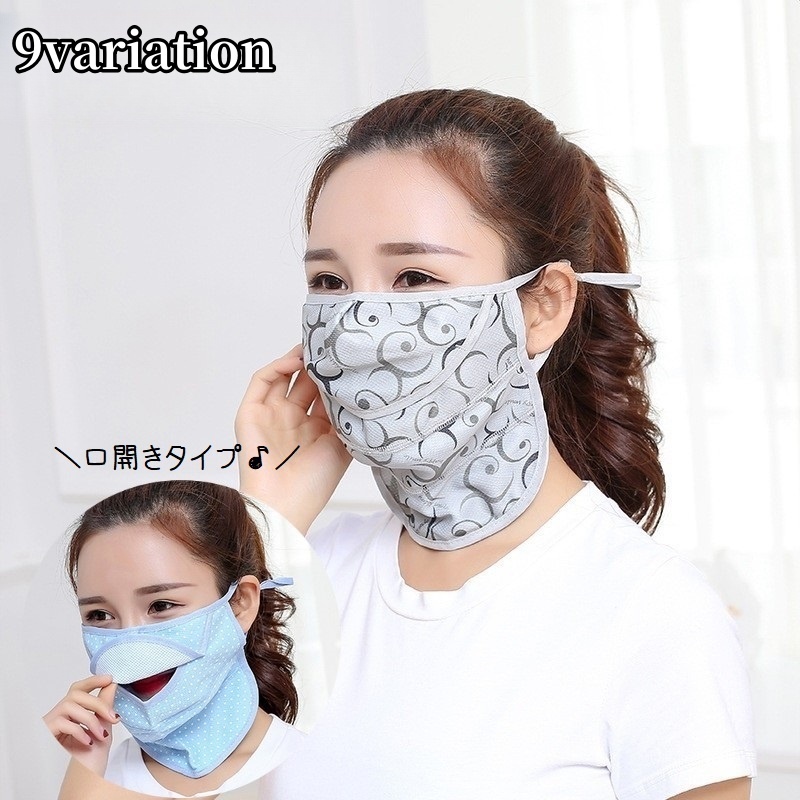 フェイスマスク フェイスカバー 口開きマスク レディース 女性 ファッション小物 便利グッズ 薄手 メッシュ 長さ調節可 ドット ウェーブ 通気性 屋
