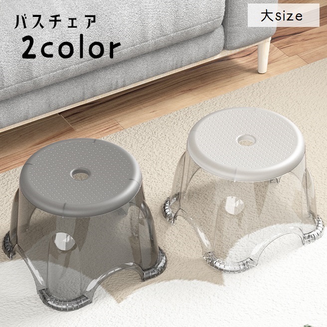 バスチェア 浴用椅子 風呂椅子 風呂イス 踏み台 スツール いす チェア 積み重ね クリアカラー 透明 バス用品 滑り止め 穴あり お風呂場 浴室 脱