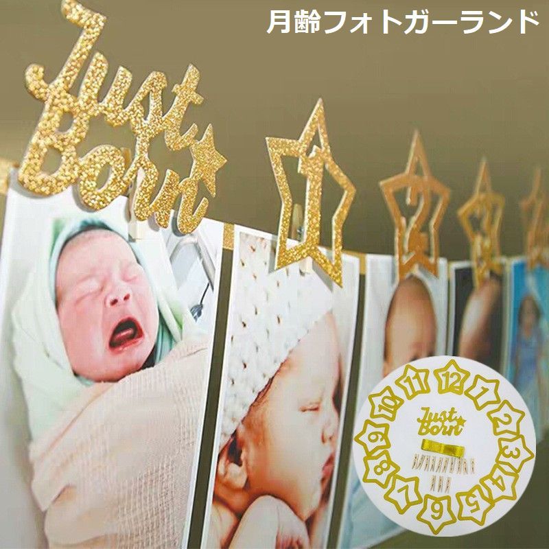 ガーランド ベビー 赤ちゃん 新生児 月齢 バースデー 誕生日 記念日 記念写真 フォト 飾り付け 出産祝い 1歳 パーティー