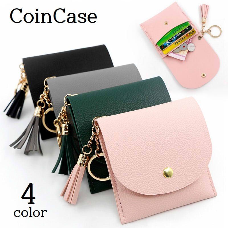 コインケース 小銭入れ レザー調 スナップボタン キーリング付き タッセル付き カード入れ お札入れ 四角形 スクエア型 レディース 女性 持ち歩き便