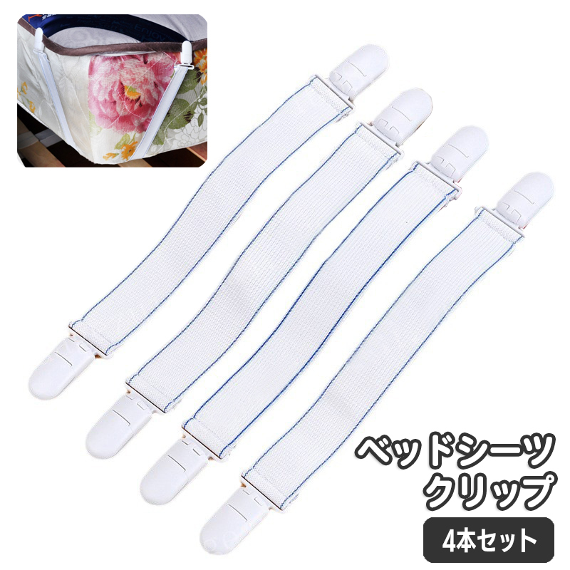 ベッドシーツクリップ 4本セット 固定用 ズレ防止 滑り止め ゴムバンド ベッドパッド マットレス 布団 ソファー 寝具用品 日用雑貨 調節可能 2点