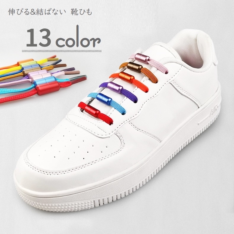 靴紐 くつひも 靴ひも シューレース ほどけない 結ばない スニーカー用 長さ調整可能 ねじ ネジ式 無地 伸縮性 伸びる 単色 メタルバックル フリ