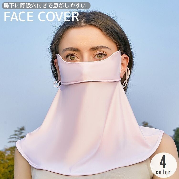 フェイスカバー フェイスマスク フェイスガード ネックガード 薄手 無地 UV対策 紫外線対策 日焼け対策 日よけ 通気性 長さ調節可能