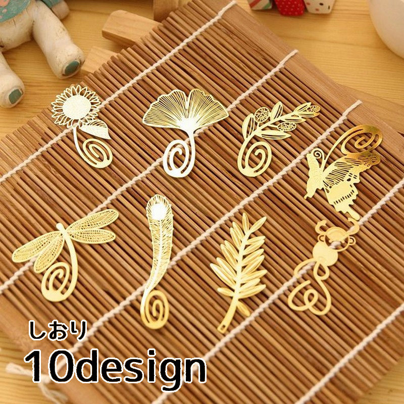 しおり 栞 2個セット ブックマーカー 文房具 読書 可愛い デザイン豊富 蝶 ひまわり リーフ ゴールドカラー おしゃれ ギフト プレゼント 勉強