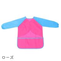 スモック お食事エプロン 子供用 子ども用 キッズ 男の子 女の子 長袖 撥水 面ファスナー ポケット付 袖口ゴム お絵描き 工作 無地 カラフル 幼