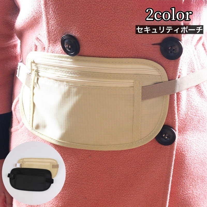 セキュリティポーチ ウエストポーチ パスポートケース トラベルケース 貴重品ケース 薄型 軽量 防水 盗難防止 紛失防止 スリ防止 無地 シンプル 雑