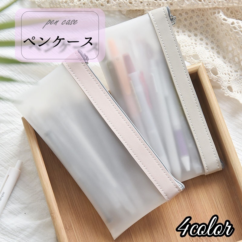 ペンケース 筆箱 文具 ポーチ スケルトン 半透明 ファスナー 防水 軽量 大容量 収納用品 学生 シンプル おしゃれ