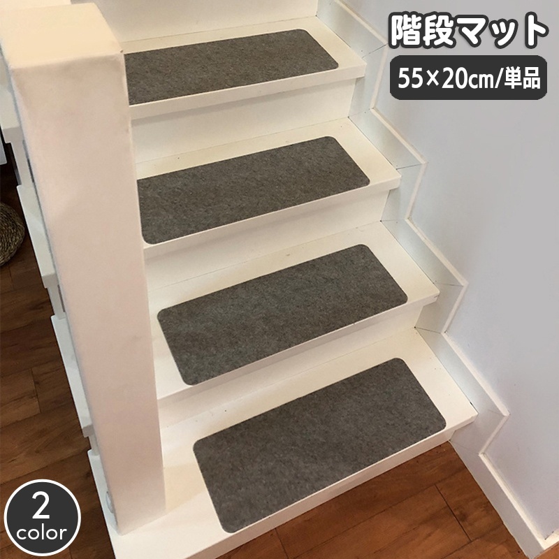 階段マット 幅55cm 単品 1枚 滑り止め 屋内 カーペット 階段クッション 傷防止 おしゃれ シンプル 無地 スタイリッシュ すべりどめ 階段用敷