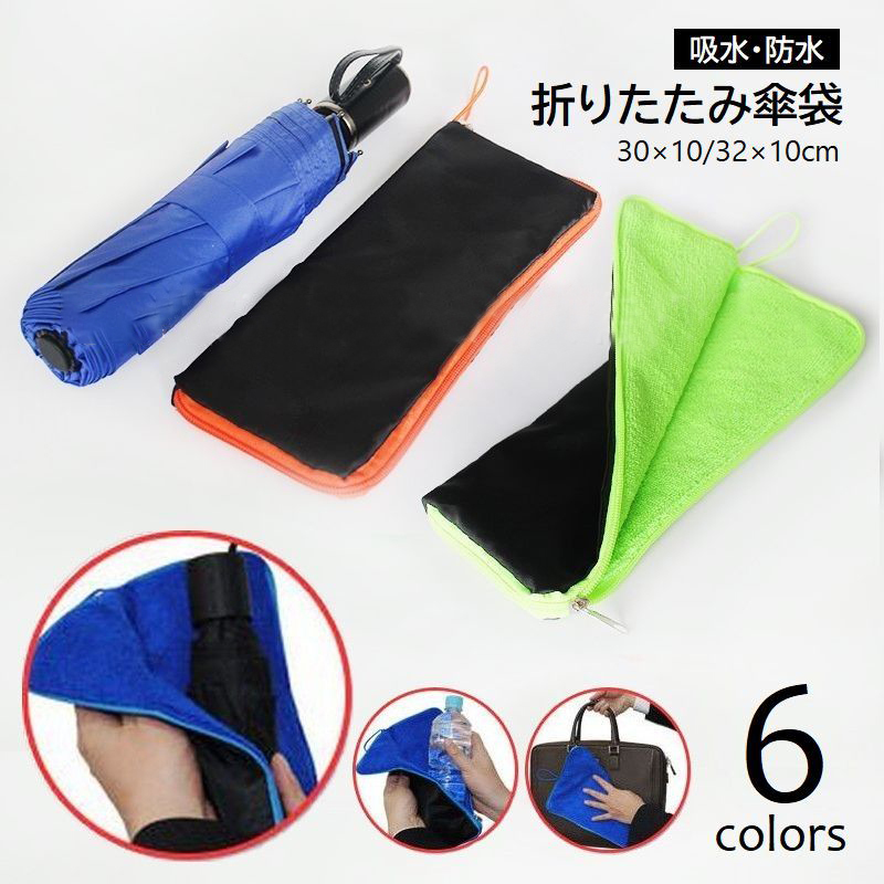 傘カバー 折りたたみ傘カバー 傘袋 傘入れ 防水 吸水ポーチ ペットボトルカバー 傘 ケース 携帯 持ち運び ポータブル ファスナー付タオル 便利 多