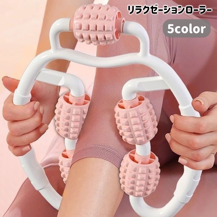リラクゼーションローラー ストレッチ リラックス ほぐし 指圧代用器 太もも ふくらはぎ 足 コロコロ 360度回転 5ローラー 挟む ハンディ
