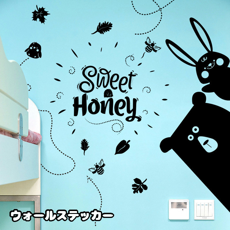 ウォールステッカー 壁紙シール 取り外し可能 くま うさぎ ミツバチ 葉 文字 英語 面白い 子供部屋 リビング 寝室 ベッドルーム 模様替え パーテ