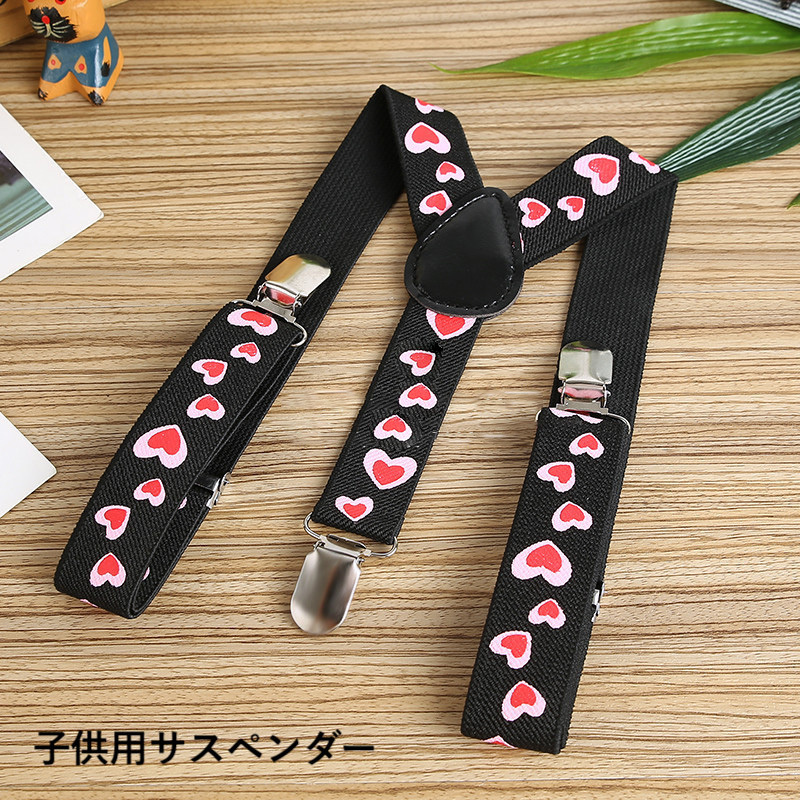サスペンダー キッズ 子供用 ユニセックス 女の子 男の子 ハート柄 Y型 入学式 発表会 七五三 フォーマル かわいい おしゃれ お出かけ 幼稚園