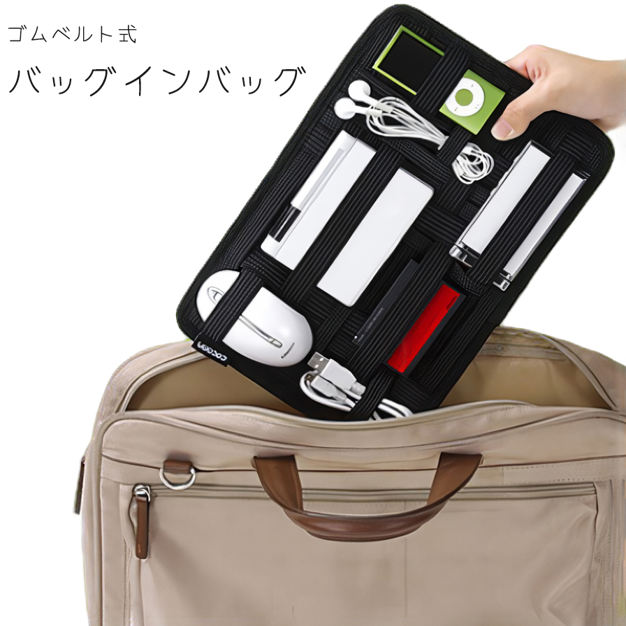バッグインバッグ バッグオーガナイザー ゴムベルト インナーケース ガジェット 小物 収納 固定 ループ付き 持ち運び 整理 整頓 便利
