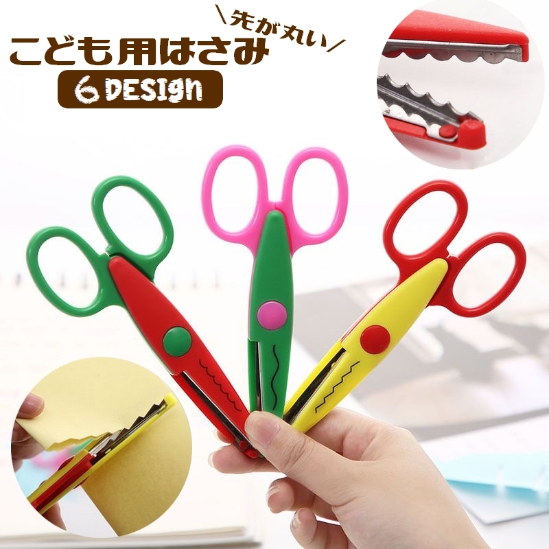 子供用はさみ キッズ ジュニア ハサミ 鋏 文房具 図工 画用紙 かわいい カラバリ豊富 デザイン豊富 ギザギザ 波 子ども こども