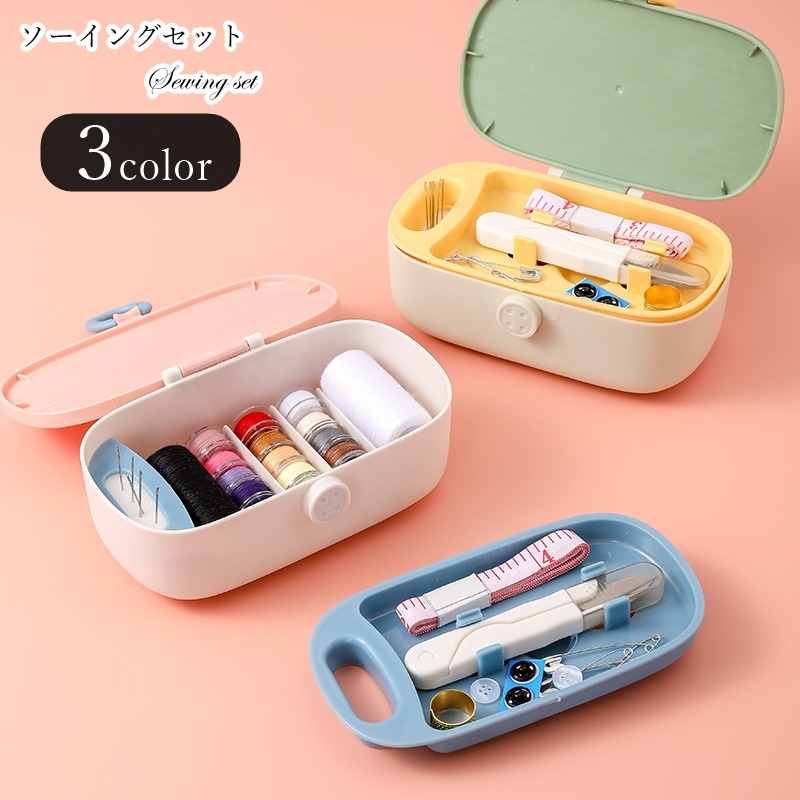 ソーイングセット 裁縫セット 裁縫箱 ハンドメイド雑貨 ハンドメイド用品 手芸用品 手芸雑貨 手芸道具 楕円形 オーバル型 2段式 縫い糸 縫い針 指
