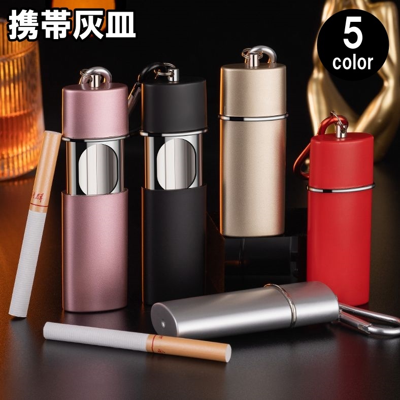 携帯灰皿 アッシュトレイ ポータブル 持ち歩き カラビナ付き 吊り下げ 吸い殻入れ コンパクト スリム おしゃれ スタイリッシュ 無地 シンプル 男性