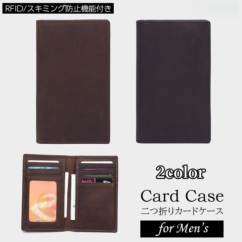 カードケース カードホルダー メンズ 男性 二つ折り 大容量 レザー 牛革 RFID 磁気 ブロック スキミング防止 スリム 薄型 カード9枚収納 パ