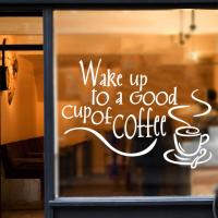 ウォールステッカー シール式 壁紙シール モノトーン モノクロ コーヒー 珈琲 英字 アルファベット 文字 英文 窓 ガラス 壁シール おしゃれ 飾り