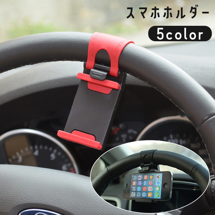 スマホホルダー ケータイホルダー 車載用 ハンドル装着 カーナビ 自動車 アクセサリー スマートフォン iPhone Android 携帯 スタンド