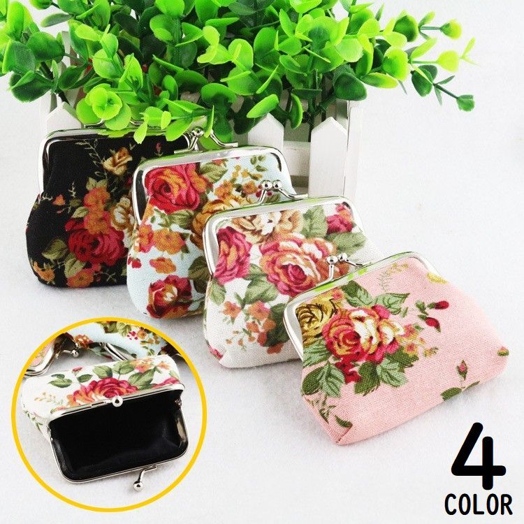 コインケース 小銭入れ がま口財布 レディース 女の子 キャンバス ミニ財布 ミニウォレット 小物入れ 花柄 おしゃれ コンパクト