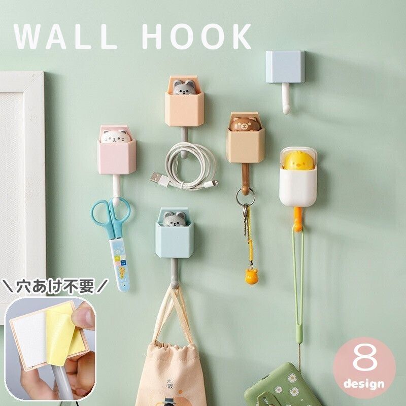 ウォールフック 粘着フック 壁掛けフック キーフック 穴あけ不要 アニマル 動物 ネコ クマ 帽子掛け 小物掛け 収納 かわいい 便利