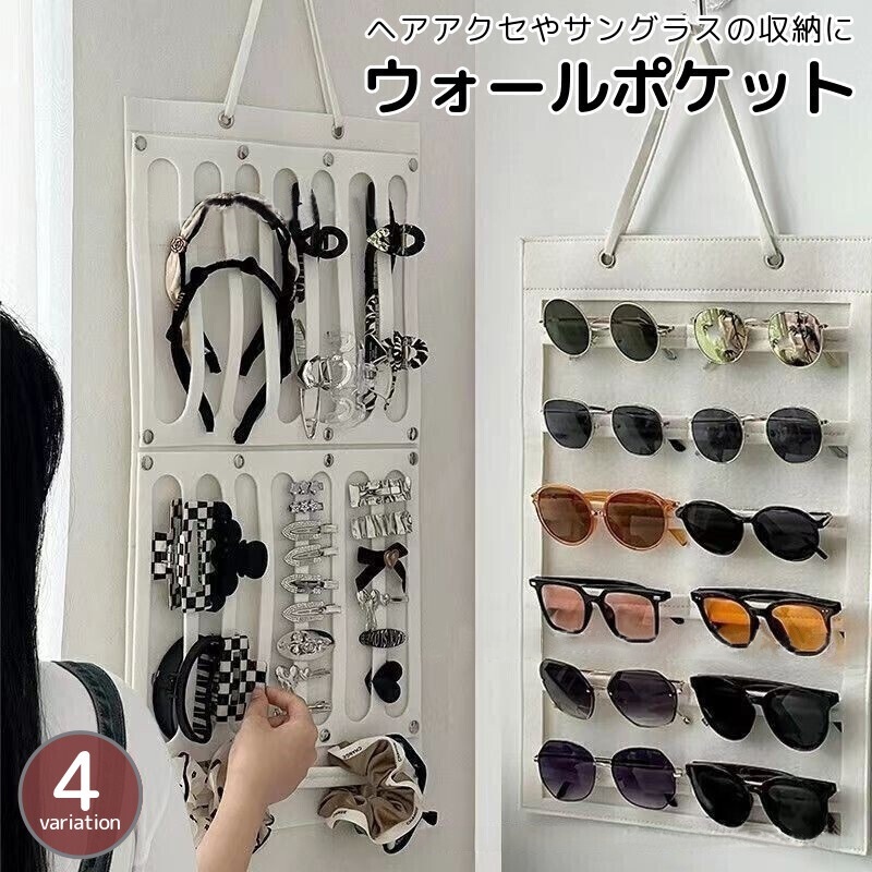ウォールポケット ヘアアクセサリー収納 サングラス収納 大容量 壁掛け 吊り下げ 紐付き ヘアクリップ ヘアピン カチューシャ めがね ディスプレイ