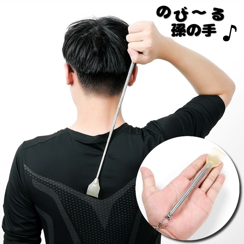 孫の手 伸縮 背中?き 痒い コンパクト 小型 伸びる 持ち歩き 携帯 便利 軽量 便利グッズ ステンレス製 職場 出先 贈り物 プレゼント 父の日