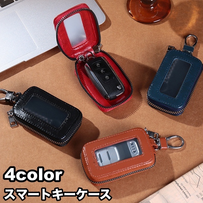 キーケース スマートキーケース 鍵入れ レザー調 男女兼用 メンズ レディース キーカバー カラビナ ファスナー ジッパー 半透明 持ち運び 持ち歩き