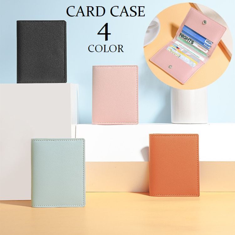 カードケース 二つ折り 薄型 カードホルダー カード入れ レザー調 スナップボタン コンパクト スリム レディース メンズ 男女兼用 ユニセックス シ
