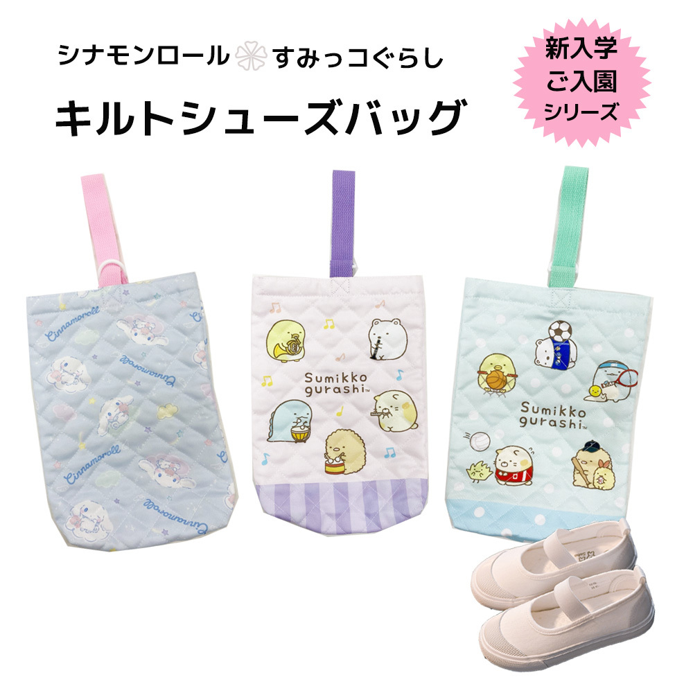 シナモンロール すみっコぐらし キルト総柄 シューズバッグ 学童用品 小学校 保育園 幼稚園 キャラクター 入学グッズ 上履き入れ 上靴袋 入学祝い