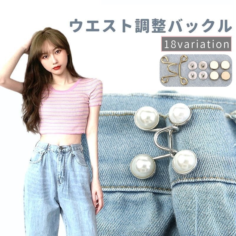 ウエストバックル 単品 DIY 裁縫材料 ジーンズ デニム ズボン サイズ調整 ボタン パール調 フェイクパール 取り付け簡単 おしゃれ かわいい
