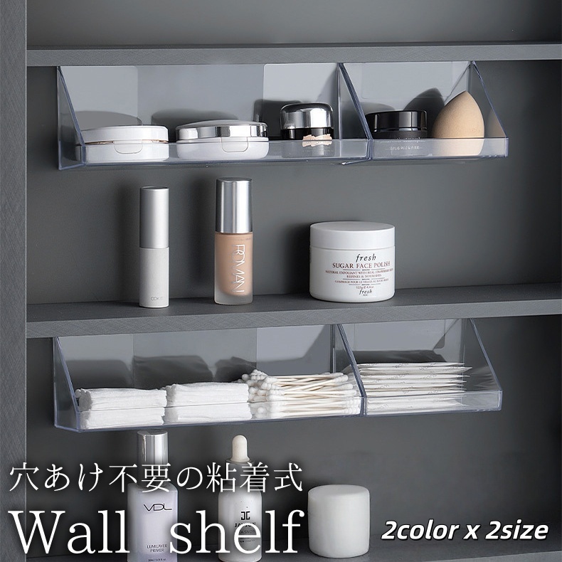 ウォールシェルフ 壁掛け棚 粘着式 壁 棚 収納シェルフ 壁面収納 壁面ラック 透明 クリア 簡単設置 貼り付け 賃貸 インテリア 壁掛け シンプル