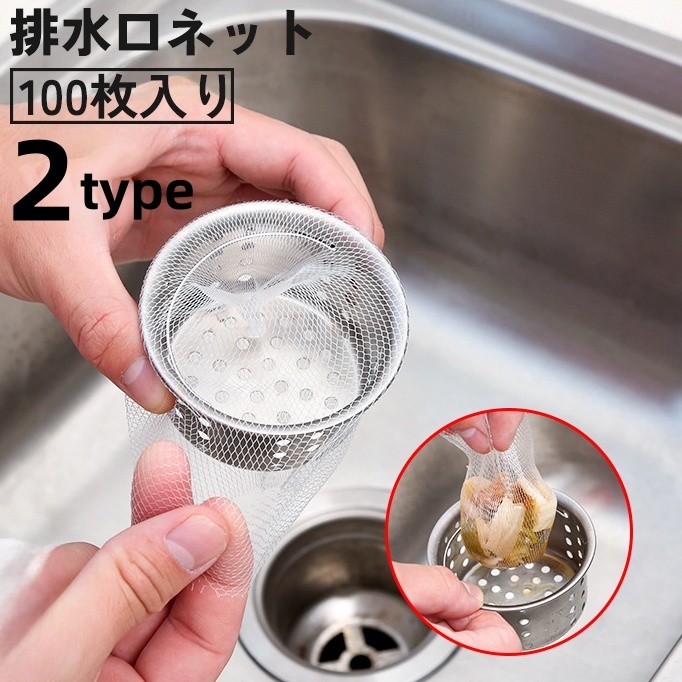 排水口ネット 水切りネット 100枚入り ストッキングタイプ 水切り袋 生ゴミ ゴミ受け 流し台 シンク 台所 お風呂 排水溝 便利