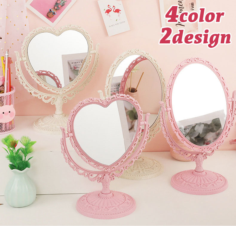 卓上ミラー スタンドミラー 鏡 両面 メイクミラー 360度調整可能 北欧風 アンティーク調 楕円 オーバル ハート 可愛い
