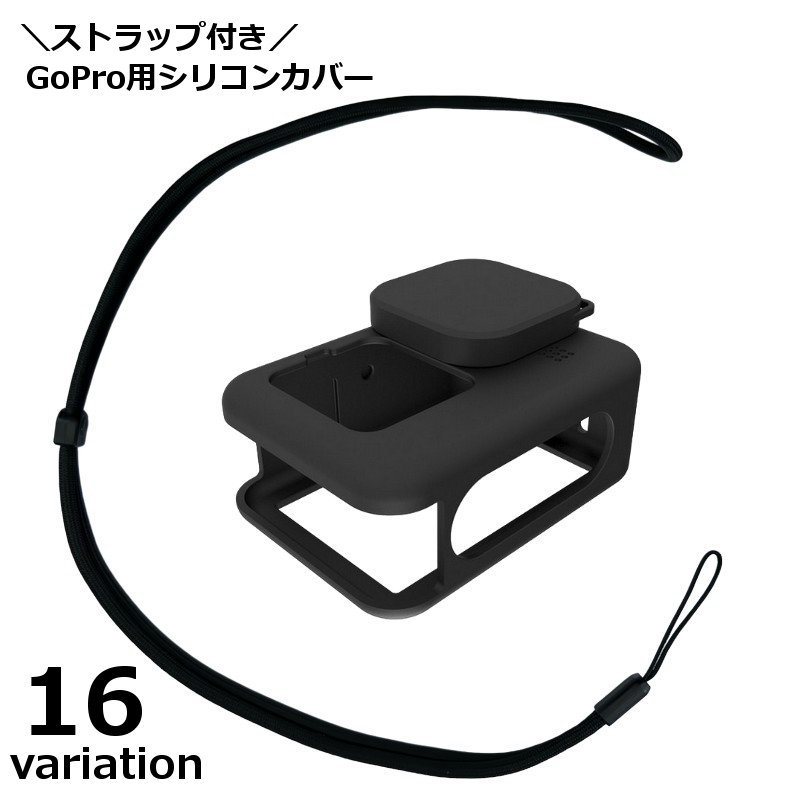 GoPro用シリコンカバー レンズカバー ストラップ付き ゴープロ gopro 12 11 10 9 ネックストラップ ハンドストラップ 落下防止 傷
