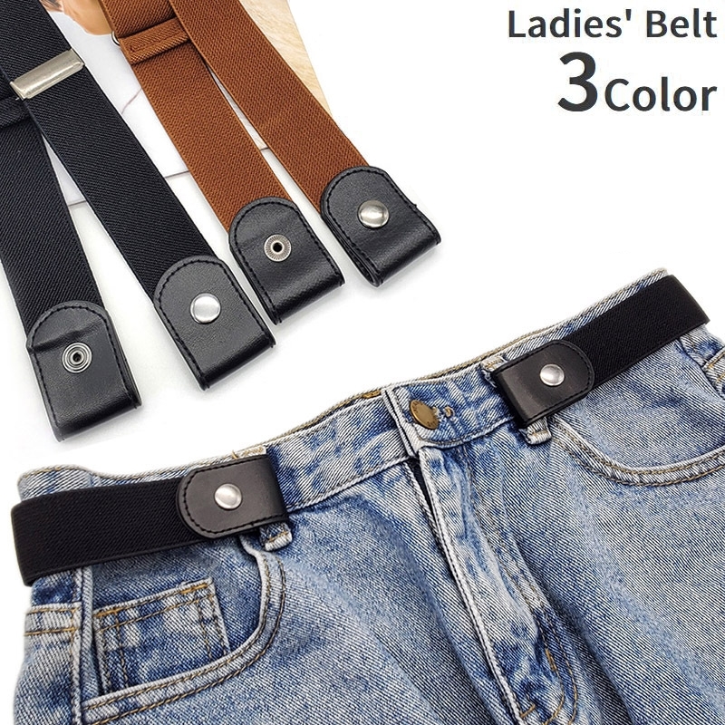 ゴムベルト レディース ループフックベルト ノーバックル ボタン式 簡単 無地 ボーダー シンプル カジュアル デイリー 女性用